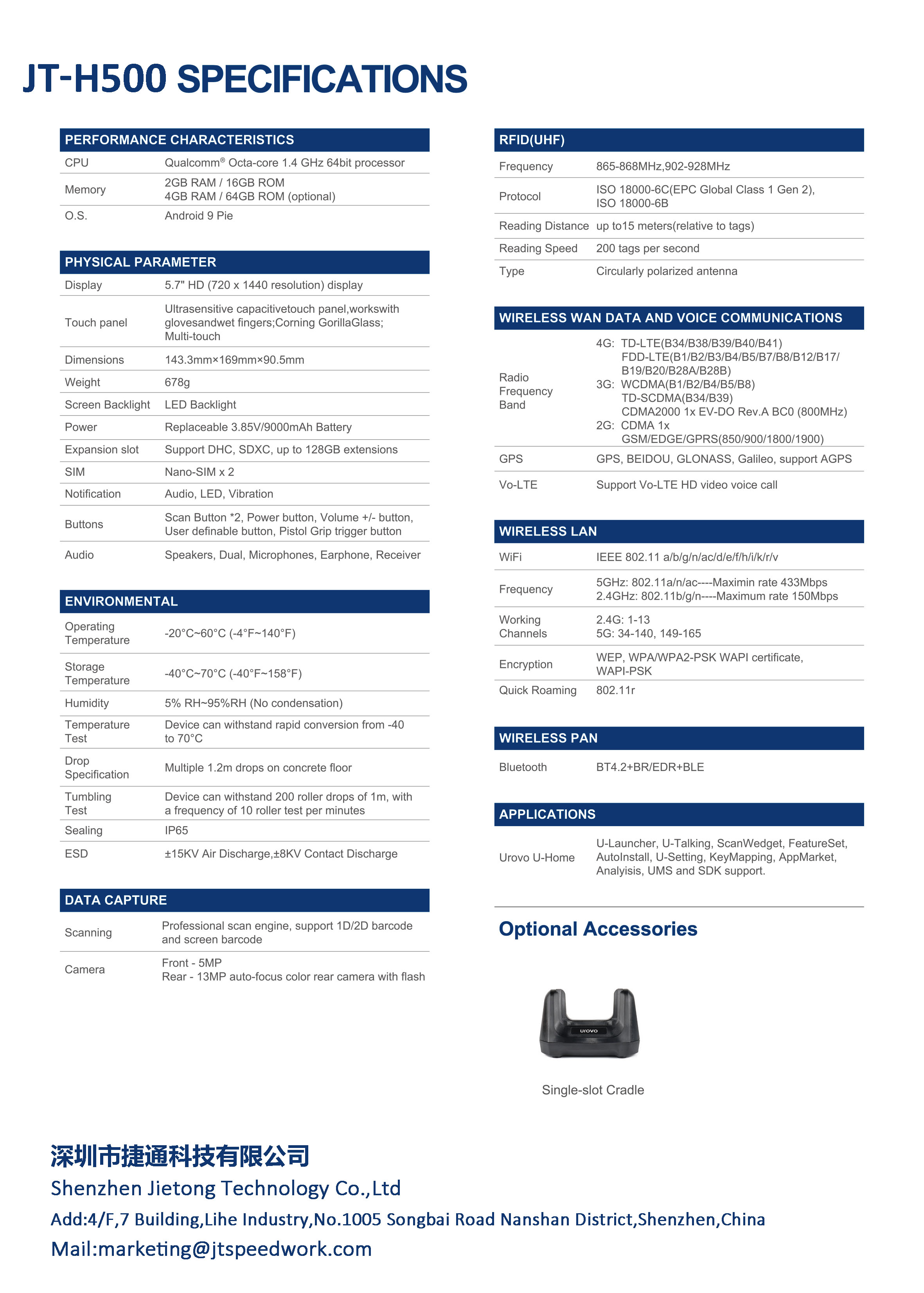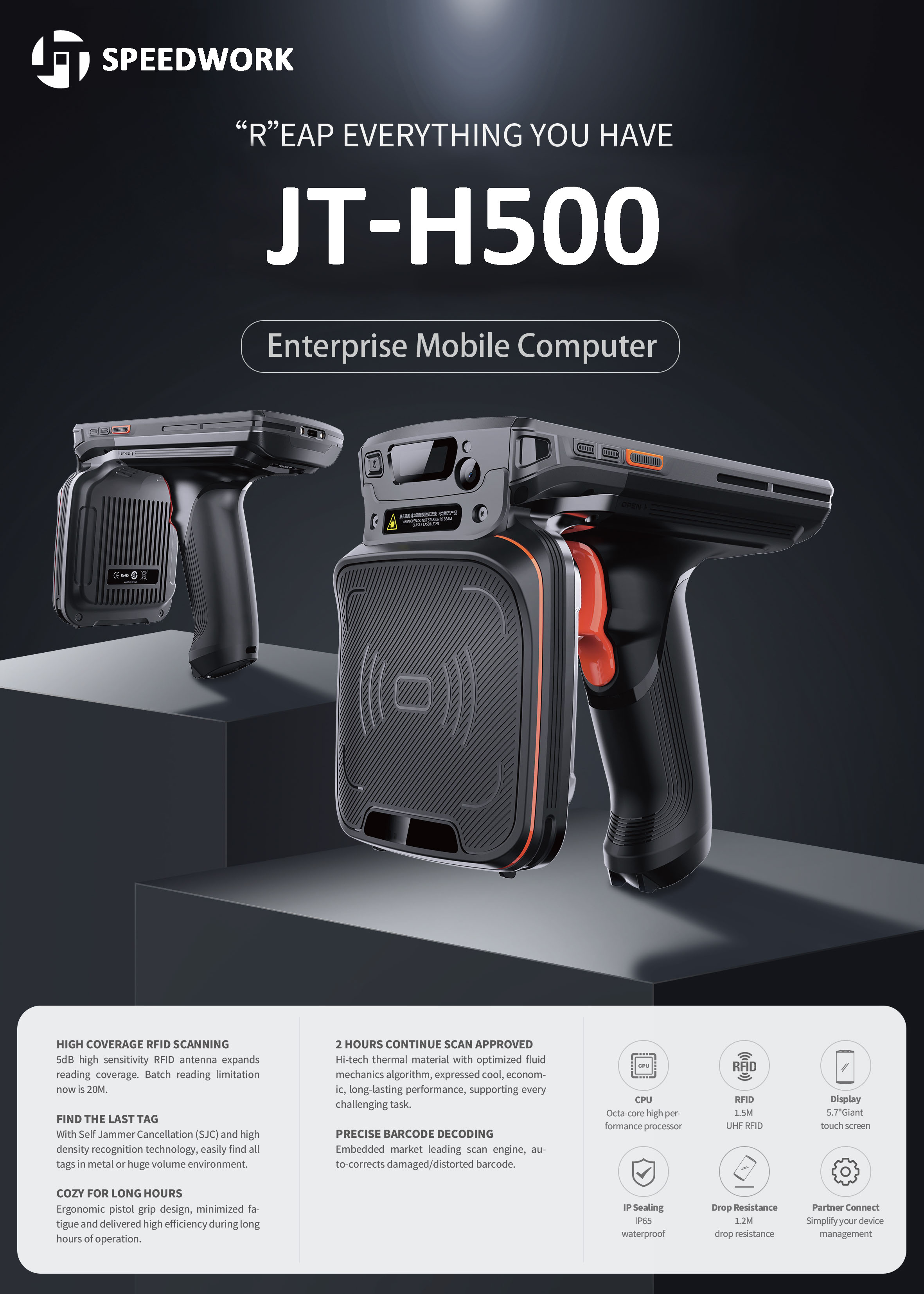 O JT-H500 é um scanner portátil RFID UHF de posicionamento de médio a alto padrão