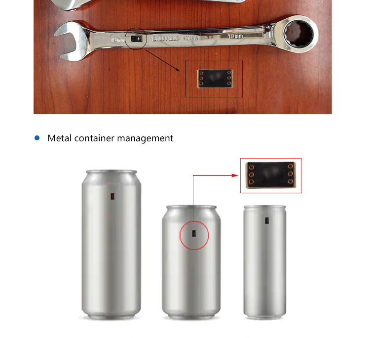 Esse A ferramenta UHF RFID Anti-metal Tag é uma aplicação de especial etiqueta e colocado na lateral dos objetos metálicos cilíndricos .