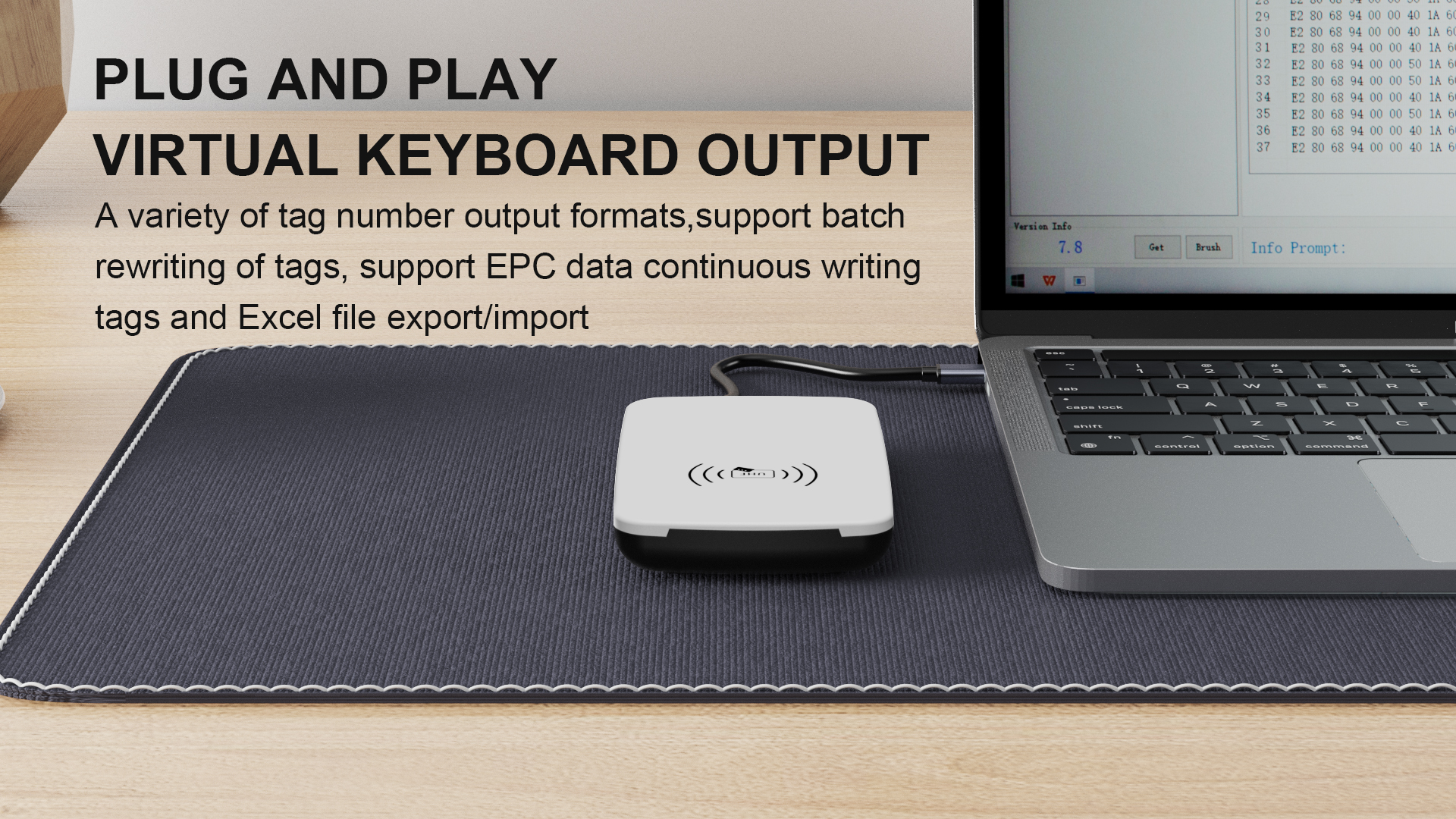 O leitor de mesa UHF RFID JTSPEEDWORK JT-6210 possui duas interfaces USB, suporta ISO18000-6C (860-960MHz) e alcance de leitura de 0 a 80 cm. Permite operações em lote com etiquetas, criptografia/autorização e atualização de firmware, oferece saída em múltiplos formatos e SDKs em C++/C#/Java/Android para desenvolvimento secundário.